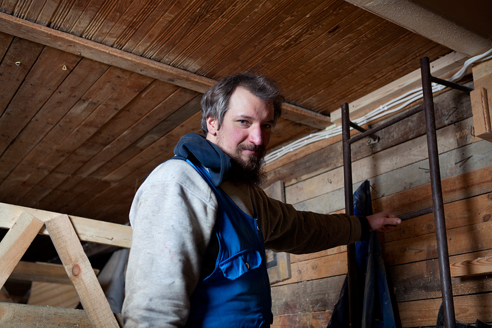 Verstaan vintillä kuivatetaan masto- ja muita venepuita. Vintille pääsee katossa olevan luukun kautta.